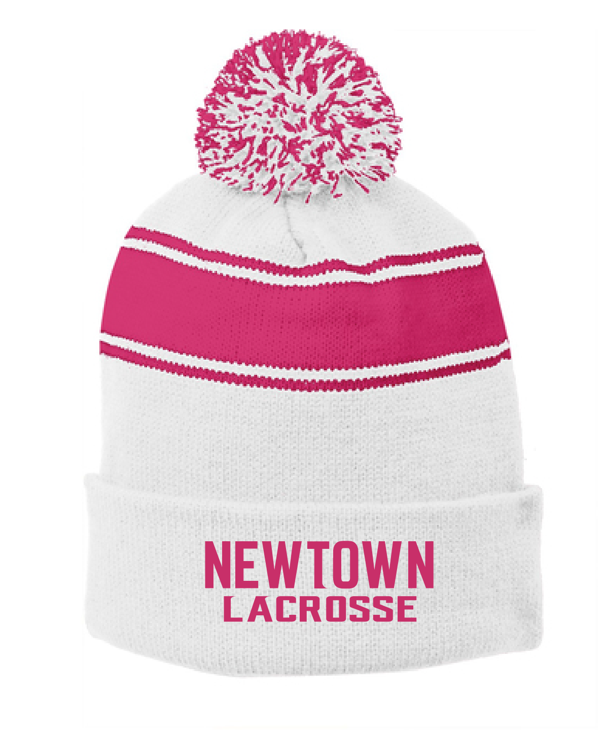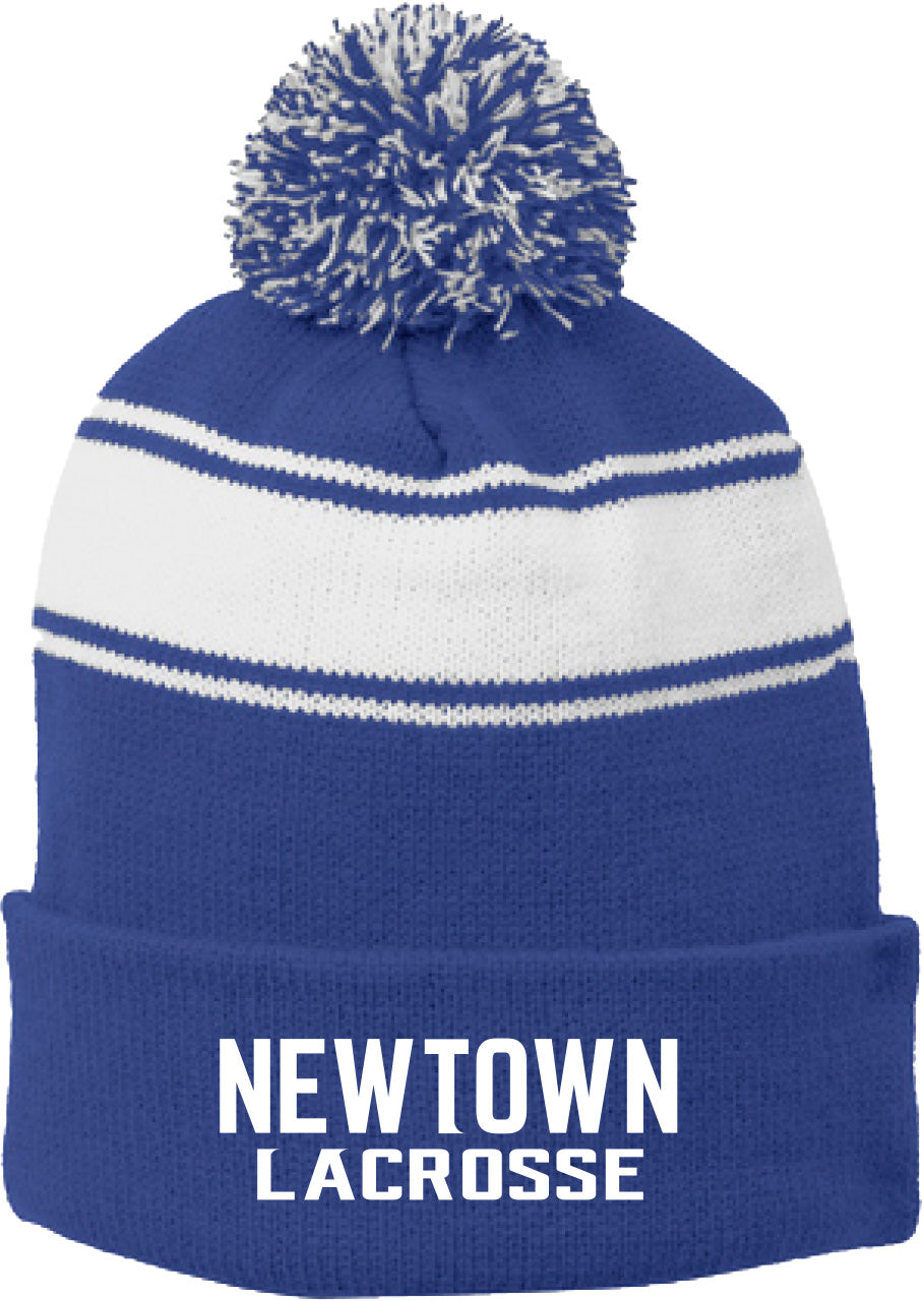A fan fave: a classic beanie with three stripes and a two-tone pom.